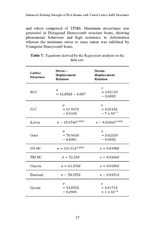Table 7: Equations derived by the Regression analysis on the